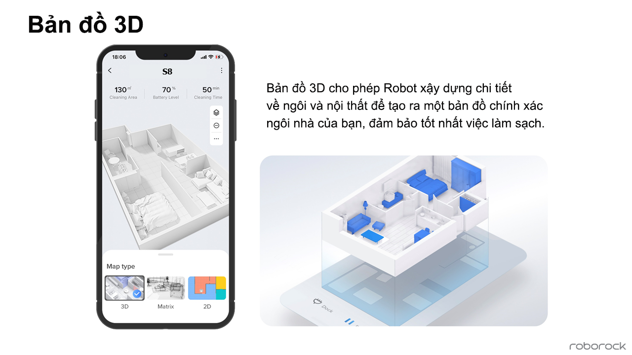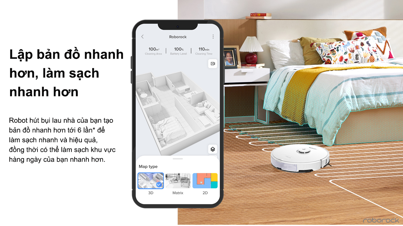 Robot hút bụi lau nhà Roborock S8 Plus sẽ thực sự phát huy tối ưu khả năng khi được người dùng thiết lập bản đồ dọn dẹp. Từ đó, robot sẽ có thể làm sạch nhanh hơn gấp 6 lần. Đồng thời, bạn cũng có thể quyết định thời gian robot hoạt động theo yêu cầu của mình.