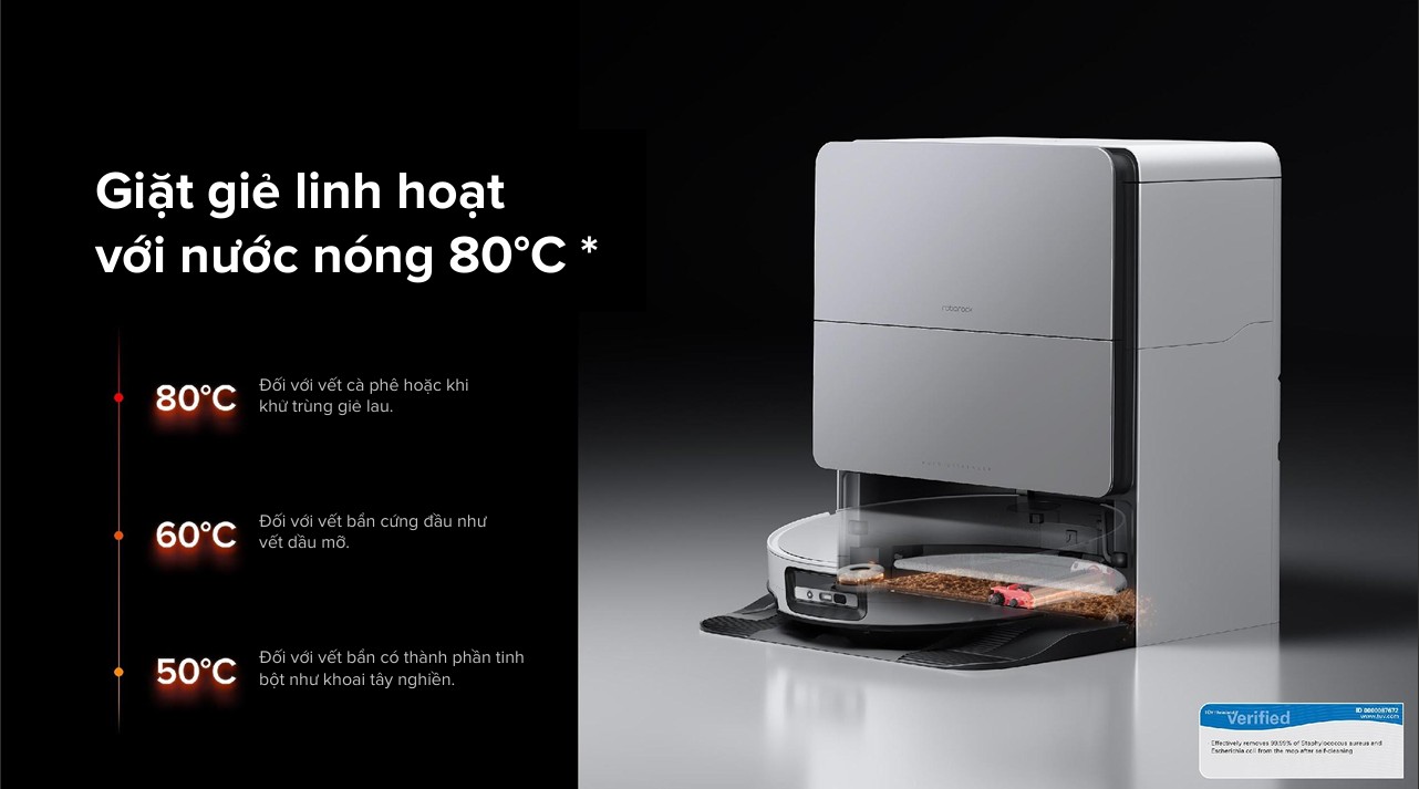 - Giặt giẻ linh hoạt với nước nóng 80°C