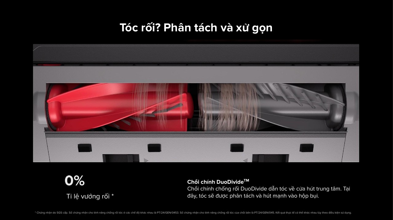 - Thiết kế hệ thống chổi lăn kép DuoDivide™ chống rối tóc