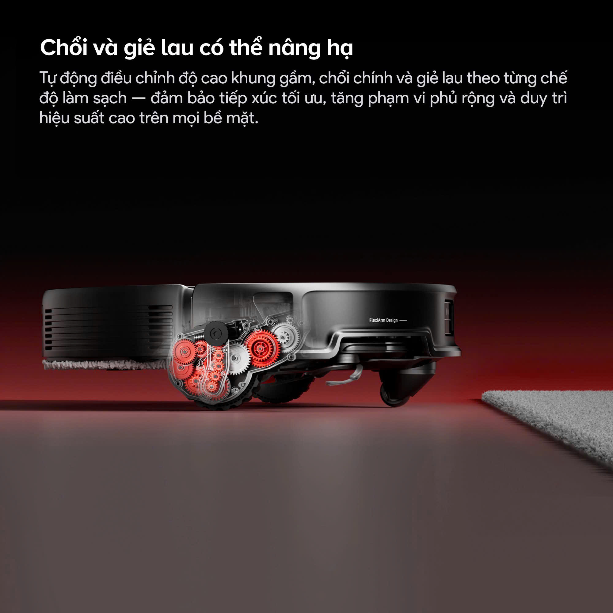 Tự tháo rời giẻ: Khi phát hiện thảm, robot tự động tháo giẻ tại Dock để hút bụi thảm khô ráo, tránh làm hỏng sợi thảm.