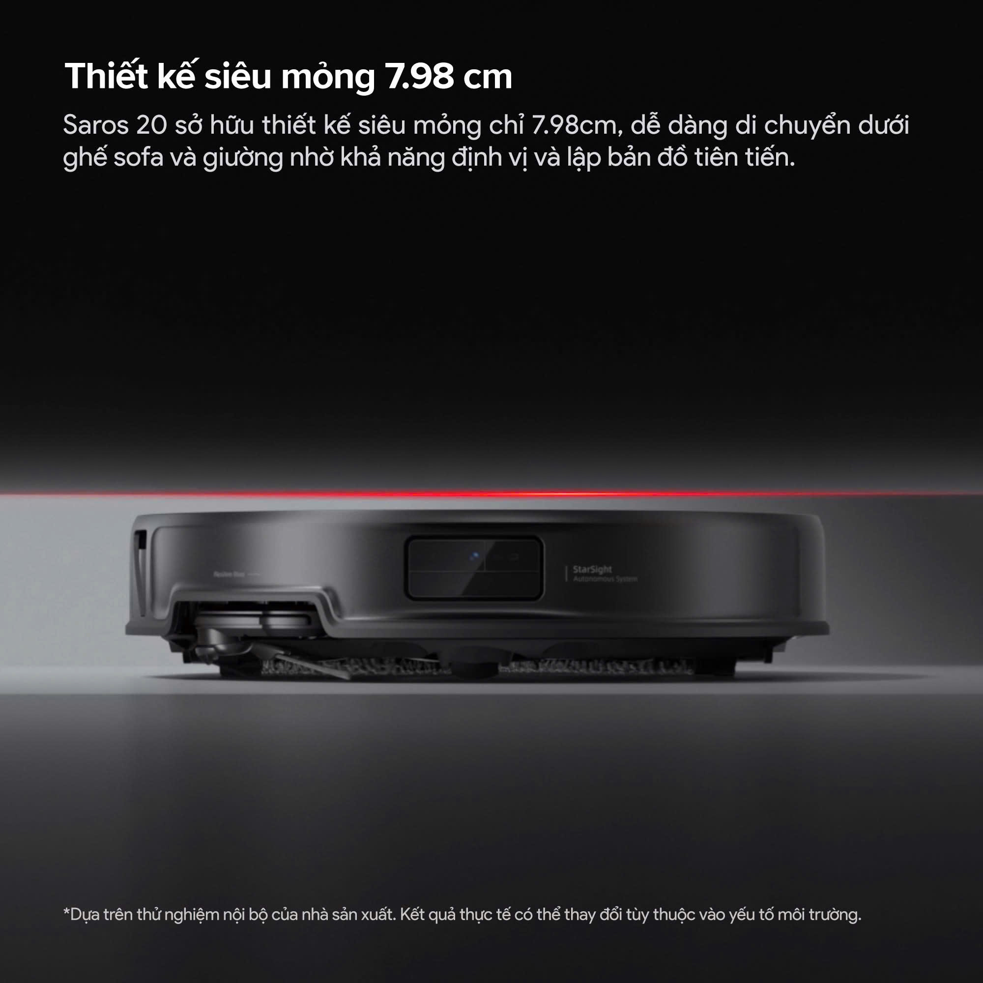 Nhờ hệ thống điều hướng RetractSense™ với cụm LiDAR có thể thu gọn, Saros 20 sở hữu thân máy siêu mỏng chỉ 7.98 cm.