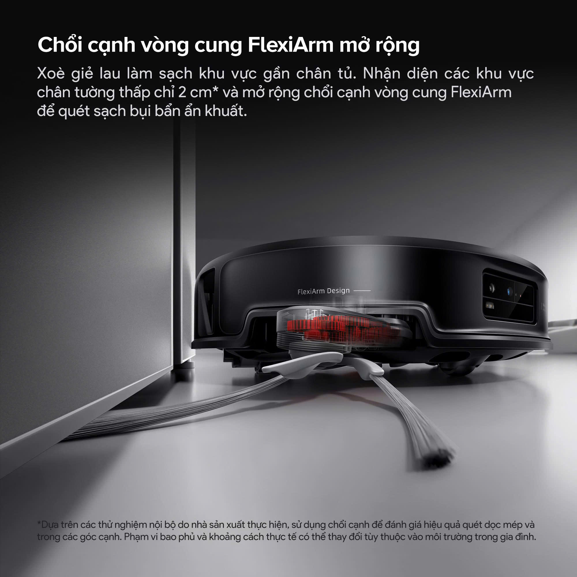 Cánh tay cơ học FlexiArm™: Tự động vươn giẻ lau sát mép tường 0mm, xóa sổ mọi vết bẩn ở góc cạnh.