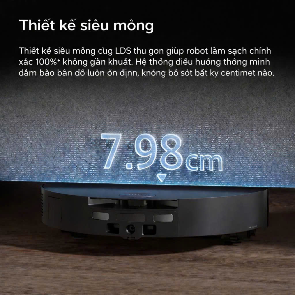 Với chiều cao chỉ 7.98 cm (3.1 inch), Saros 20 Sonic là một trong những robot hút bụi mỏng nhất thị trường, nhờ hệ thống RetractSense™ Navigation System – cảm biến LDS có thể thu gọn lại. Điều này cho phép máy dễ dàng chui vào dưới gầm sofa, giường ngủ hay tủ thấp – những khu vực bụi bẩn thường tích tụ mà các robot dày hơn không thể tiếp cận.
