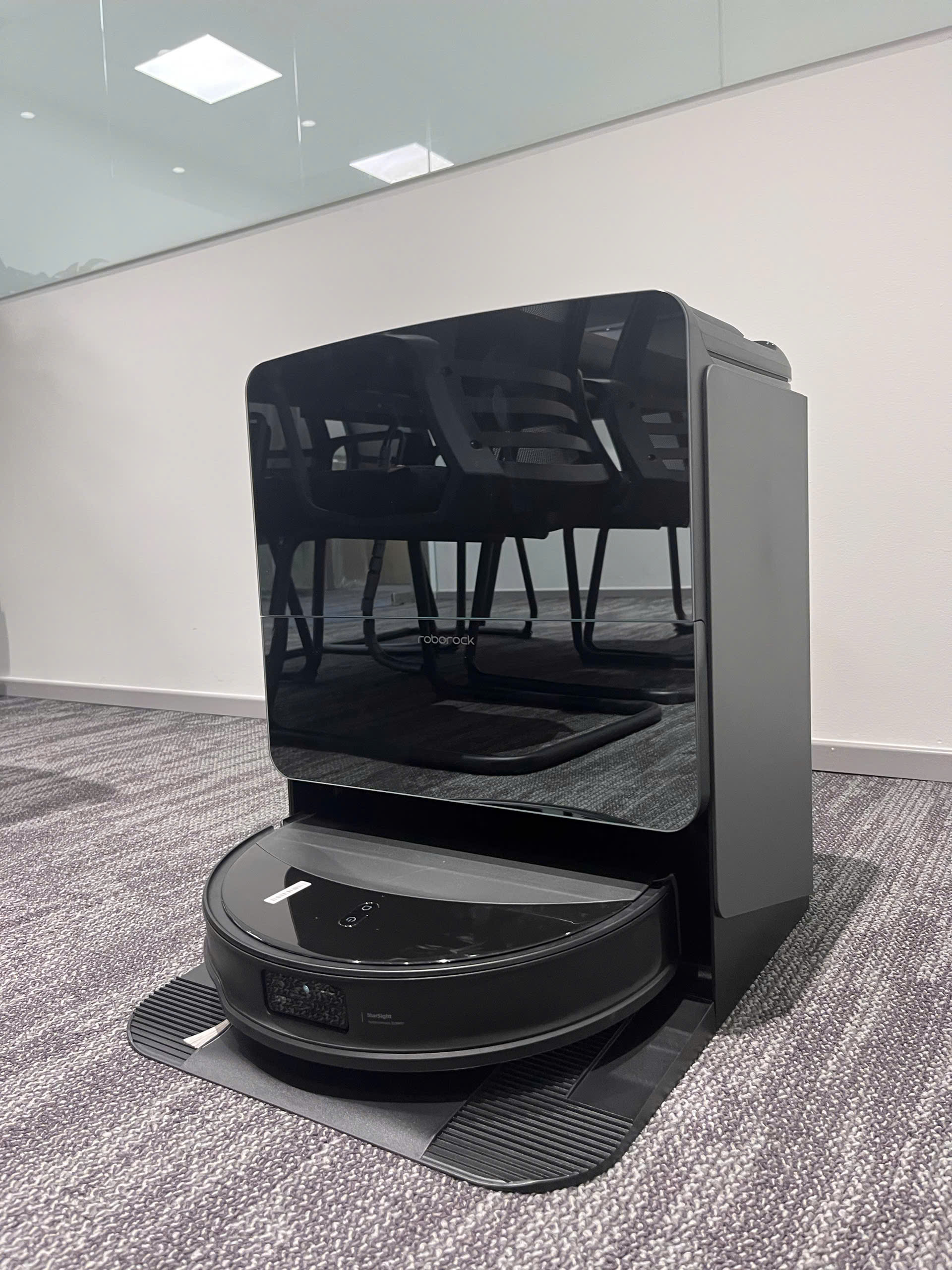 Trạm sạc của Roborock Saros 10R là một điểm nhấn công nghệ vượt trội với khả năng tự làm sạch thông minh và sấy khô khăn lau. Sau khi lau dọn, robot sẽ quay lại trạm sạc để thực hiện quy trình làm sạch bằng nước nóng 80°C, loại bỏ vi khuẩn hiệu quả. Công nghệ thổi khô với nhiệt độ 45°C giúp khăn lau khô hoàn toàn, sẵn sàng cho lần làm sạch tiếp theo. Túi rác dung tích 2.5L tại trạm sạc cũng giúp bạn tiết kiệm thời gian bảo dưỡng và đảm bảo robot luôn sẵn sàng hoạt động.