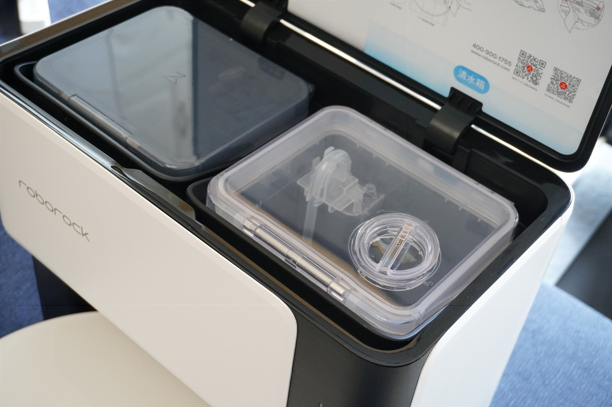 Khay nước của robot có dung tích 200ml, còn ngăn chứa nước dơ và ngăn chứa nước sạc trong dock là 2,9 lít. Hãng quảng cáo rằng khi được đổ đầy nước trong dock, con robot có thể hoạt động được tới 400 mét vuông mới phải châm lại nước vô dock.