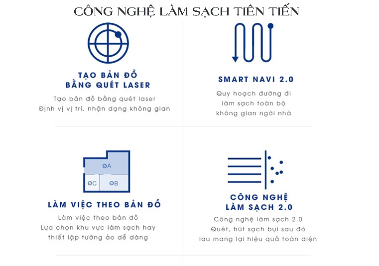 | Chức năng | Hút bụi, lau ướt, lau khô |