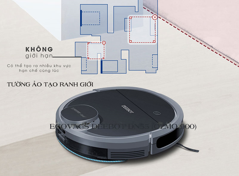 Ecovacs Deebot DN55 được trang bị tường ảo giúp khoanh vùng di chuyển làm sạch của Robot. Bạn chỉ cần đặt tường ảo ở vị trí không muốn Robot di chuyển tới, thiết bị sẽ phát tia hồng ngoại để tạo ranh giới không cho Robot vượt qua. Không chỉ một mà Deebot cho phép tạo nhiều tường ảo cùng lúc. Ngoài tường ảo, bạn cũng có thể sử dụng chế độ làm sạch khu vực để ưu tiên các khu vực nhất định.