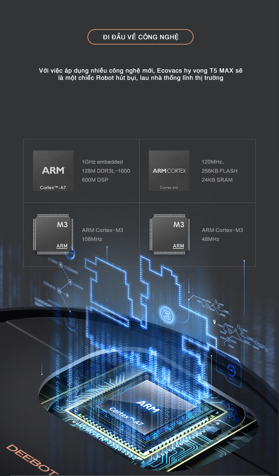 Deebot T5 Max nâng cấp với hệ thống công nghệ Smart Eye để điều hướng trực quan. Nhờ vào thuật toán SLAM định vị và quy hoạch khu vực làm việc tốt nhất. Hệ thống vệ sinh 2.0 cùng với các chức năng hút, lau sàn, quét có khả năng làm sạch và lau sàn nhà vô cùng hiệu quả. Robot hiểu rõ từng chi tiết trong ngôi nhà bạn, từ đó đưa ra quyết định đường đi hợp lý. Tránh trường hợp chạy lòng vòng, bỏ sót, lặp đi lặp lại khi hoạt động.