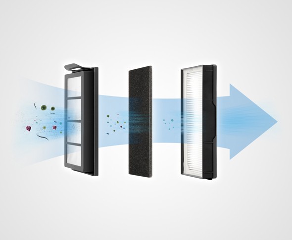 Lọc bụi 3 lớp lọc 99% vật chất hạt nhỏ, và lọc hiệu quả các hạt nhỏ đến 6 micron.
