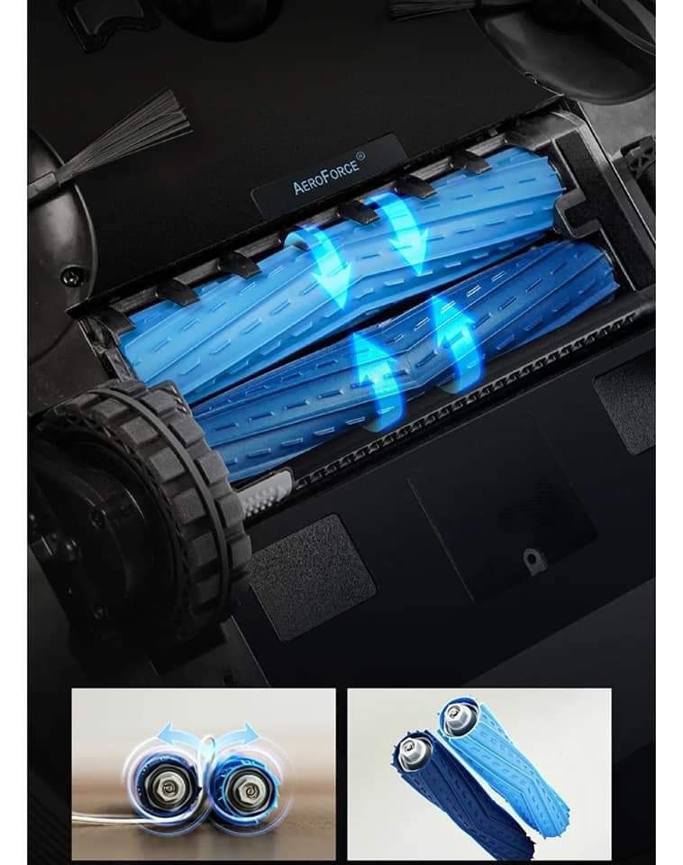 Điểm cải tiến trong thiết kế của Ecovacs Deebot T9 aivi là tích hợp 2 chổi giữa giúp làm sạch hiệu qủa hơn đối với thảm. Chổi được tiết kế răng cưa giúp lông không bị vón cục thích hợp với nhứng gia đình nuôi thú cưng.