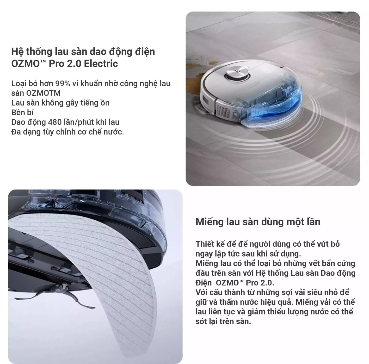 Robot vệ sinh hút bụi tránh vật cản nhỏ thông minh đầu tiên với chức năng lau nhà, hút bụi kép mạnh mẽ, bộ khử mùi không khí di động và trạm xả tự động