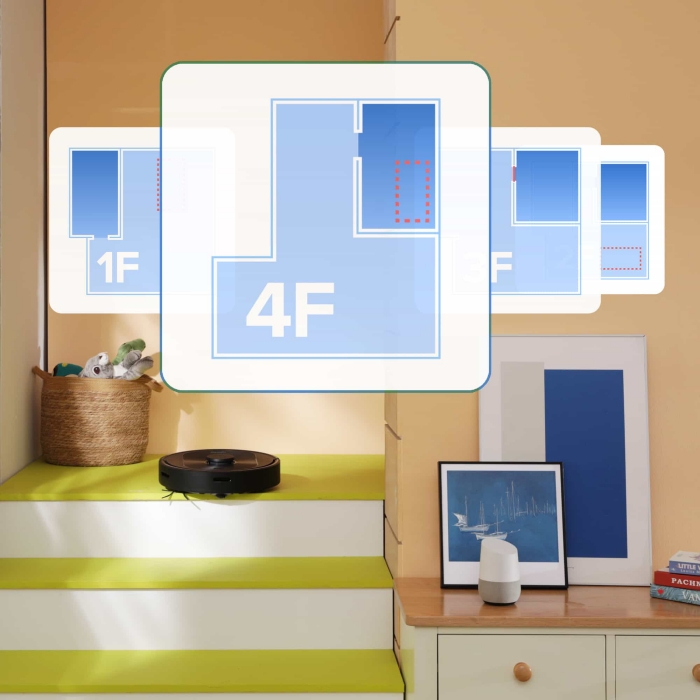 Nhiều ngôi nhà có nhiều tầng. Hệ thống bản đồ đa cấp tự động nhận dạng các cấp độ khác nhau của ngôi nhà của bạn. Tất cả những gì bạn phải làm là đặt robot xuống. Không cần thêm đế, không cần xác định cấp độ trong ứng dụng của bạn. Hỗ trợ lên đến bốn cấp độ.