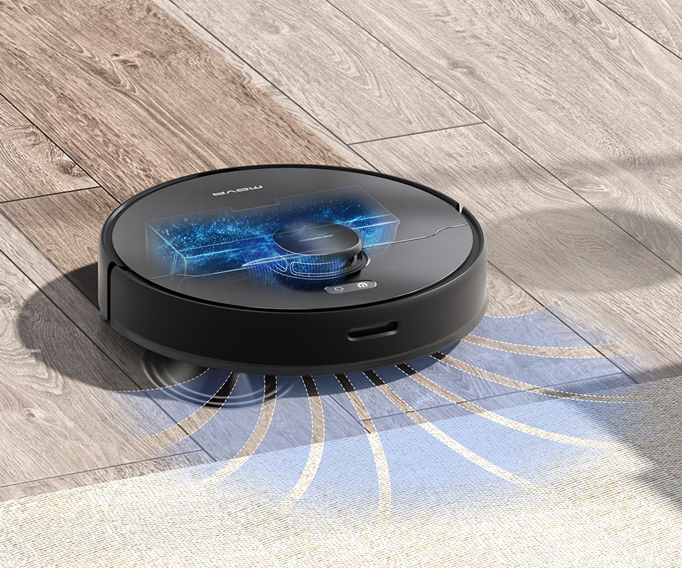 Công suất hút lên đến 4000Pa: Động cơ không chổi than Nidec kết hợp với thiết kế kênh hút tối ưu, cung cấp công suất hút mạnh 4000Pa không suy thoái. MOVA L600 đảm bảo loại bỏ mạnh mẽ tất cả các hạt.