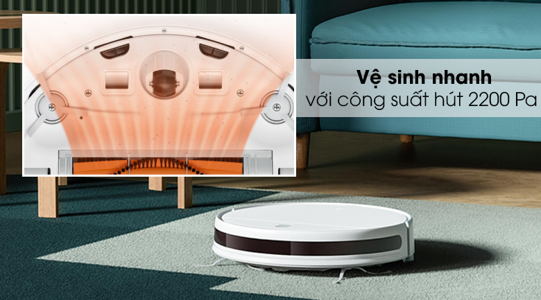 Robot hút bụi Xiaomi Vacuum Mop Essential SKV4136GL có khả năng làm sạch đến từng khe hở nhỏ nhờ lực hút mạnh mẽ đến 2200 Pa