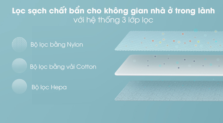 Lớp 3 - Bộ lọc Hepa lọc được bụi bẩn có kích cỡ tới 3 micromet.