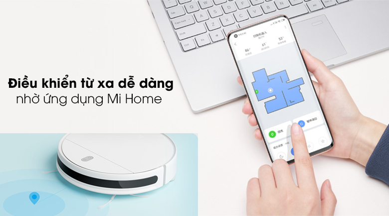 Không cần có mặt tại nhà, thông qua ứng dụng Mi Home bạn cũng dễ dàng vệ sinh nhà cửa mọi lúc. Mi Home cung cấp bản đồ căn nhà theo thời gian thực tế, chọn chế độ làm sạch, kiểm tra tình trạng làm sạch chỉ bằng các thao tác chạm đơn giản trên điện thoại.