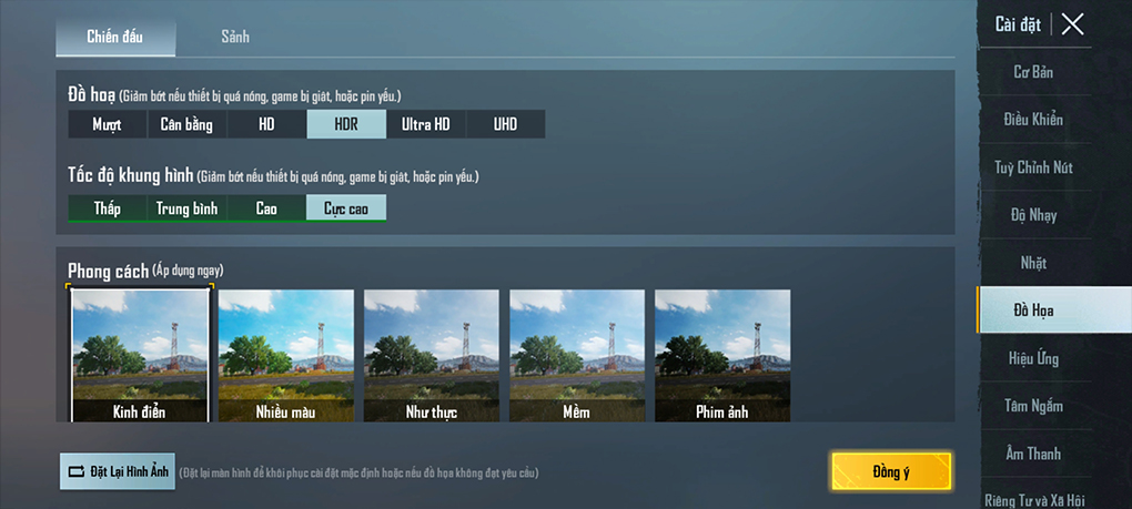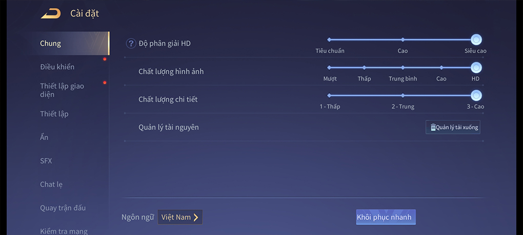 *Mức cấu hình cao nhất trên Liên Quân Mobile mà máy có thể bật được