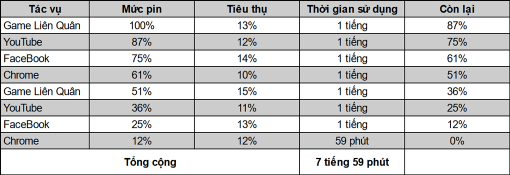 Sở hữu viên pin dung lượng tốt, máy cho thời lượng sử dụng liên tục khoảng 8 tiếng với các tác vụ tổng hợp ở điều kiện độ sáng, âm thanh 100%, sử dụng WIFI trong môi trường máy lạnh (thời gian sử dụng/sạc có thể thay đổi tùy theo nhu cầu sử dụng).