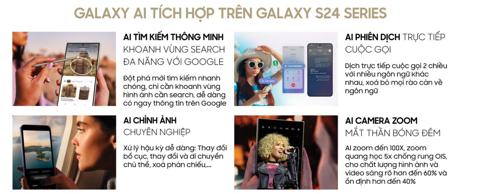 - Tính năng AI lần đầu tiên xuất hiện (Khoanh vùng search, trợ lý chỉnh ảnh, tạo hình nền thông minh, phiên dịch trực tiếp cuộc gọi,...).