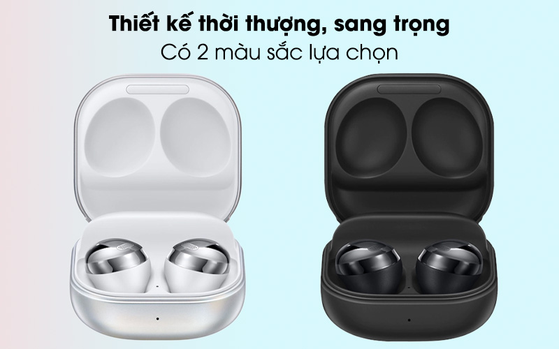 Tai nghe Bluetooth Samsung Buds Pro True Wireless sở hữu vẻ ngoài đẹp mắt thời thượng với hai màu đen và trắng. Thiết kế mới trên hình dạng tai nghe cổ điển, có khả năng làm giảm bớt sự khó chịu khi sử dụng tai nghe trong nhiều giờ và tai nghe cũng nằm chắc chắn phía trong tai khi bạn tập luyện hay vận động. Đồng thời, các lỗ thoát khí giúp cân bằng áp suất trong tai và tăng lưu lượng không khí, tạo cảm giác mềm mại dễ chịu khi sử dụng.