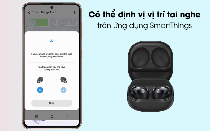 Đối với chiếc tai nghe Galaxy Buds Pro này thì bạn sẽ không phải lo việc tìm kiếm tai nghe bị thất lạc. Bởi vì nhờ công nghệ SmartThings hiện đại, bạn dễ dàng tìm kiếm và định vị, khi đó tai nghe của bạn sẽ phát ra tiếng bíp để bạn có thể dễ dàng tìm thấy chúng ở bất kỳ đâu trong nhà.