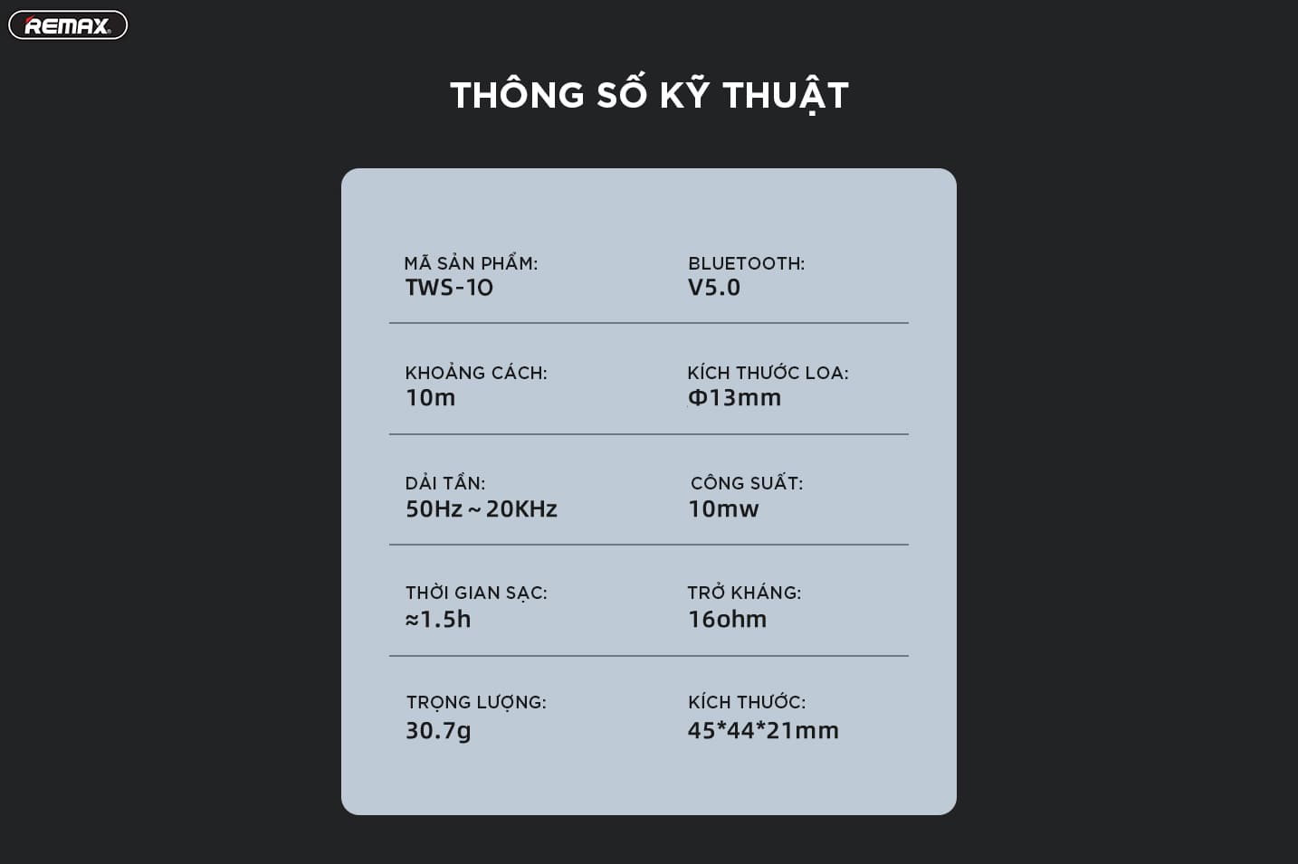 Tai nghe True Wireless Remax TWS-10i không chỉ sở hữu thiết kế ấn tượng mà còn được trang bị công nghệ kết nối vô cùng hiện đại. Cùng khám phá ngay chiếc tai nghe thông minh TWS-10i này nhé.