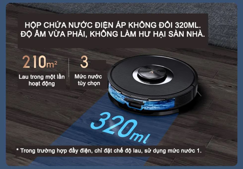 Sau mỗi lần sạc đầy, robot hút bụi lau sàn Viomi Alpha 2 Pro có thể chạy được tới 420m2 nhờ trang bị pin lên đến 5200Mah. Cùng với đó là bình chứa nước có áp suất không đổi, dung tích 320ml và thiết có có thể cho phép bạn điều chỉnh được lượng nước trong bình.