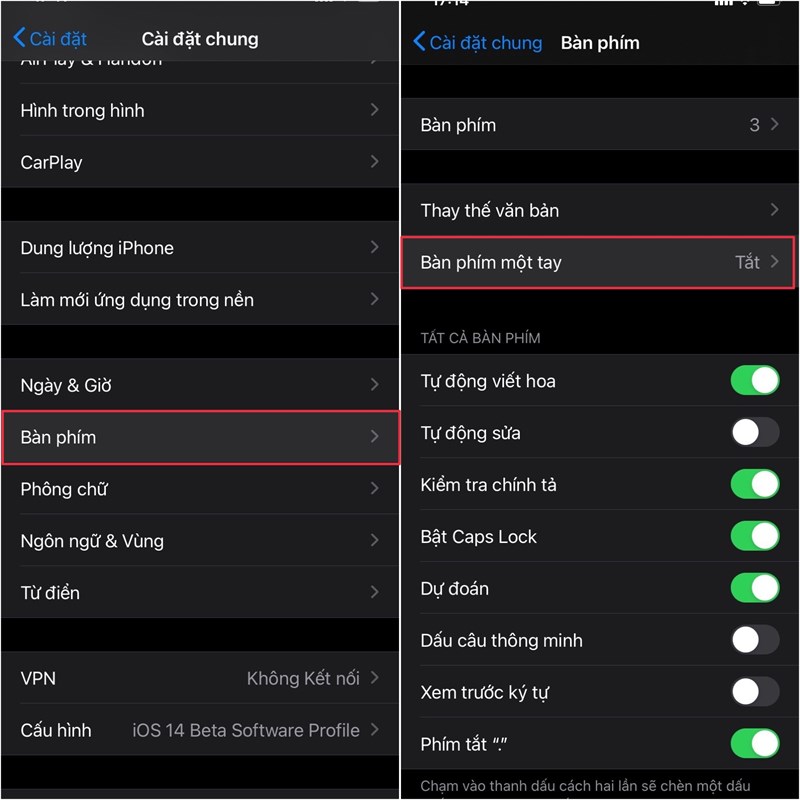 Cài đặt chung > Bàn phím > Chế độ một tay