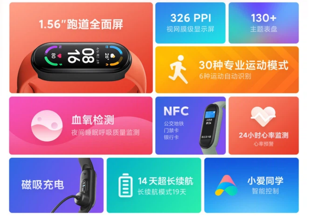 Cụ thể năm nay, Mi Band 6 đã có màn hình kích thước được nâng cấp lên 1.56 inch lớn hơn tới 50% so với phiên bản tiền nhiệm. Màn hình này sử dụng tấm nền AMOLED cao cấp, mật độ điểm ảnh 326ppi và có viền màn hình được thiết kế mỏng hơn cả các bên. Ngoài ra, tổng thể thiết kế vẫn được giữ nguyên với thiết kế dây đeo đặc trưng.