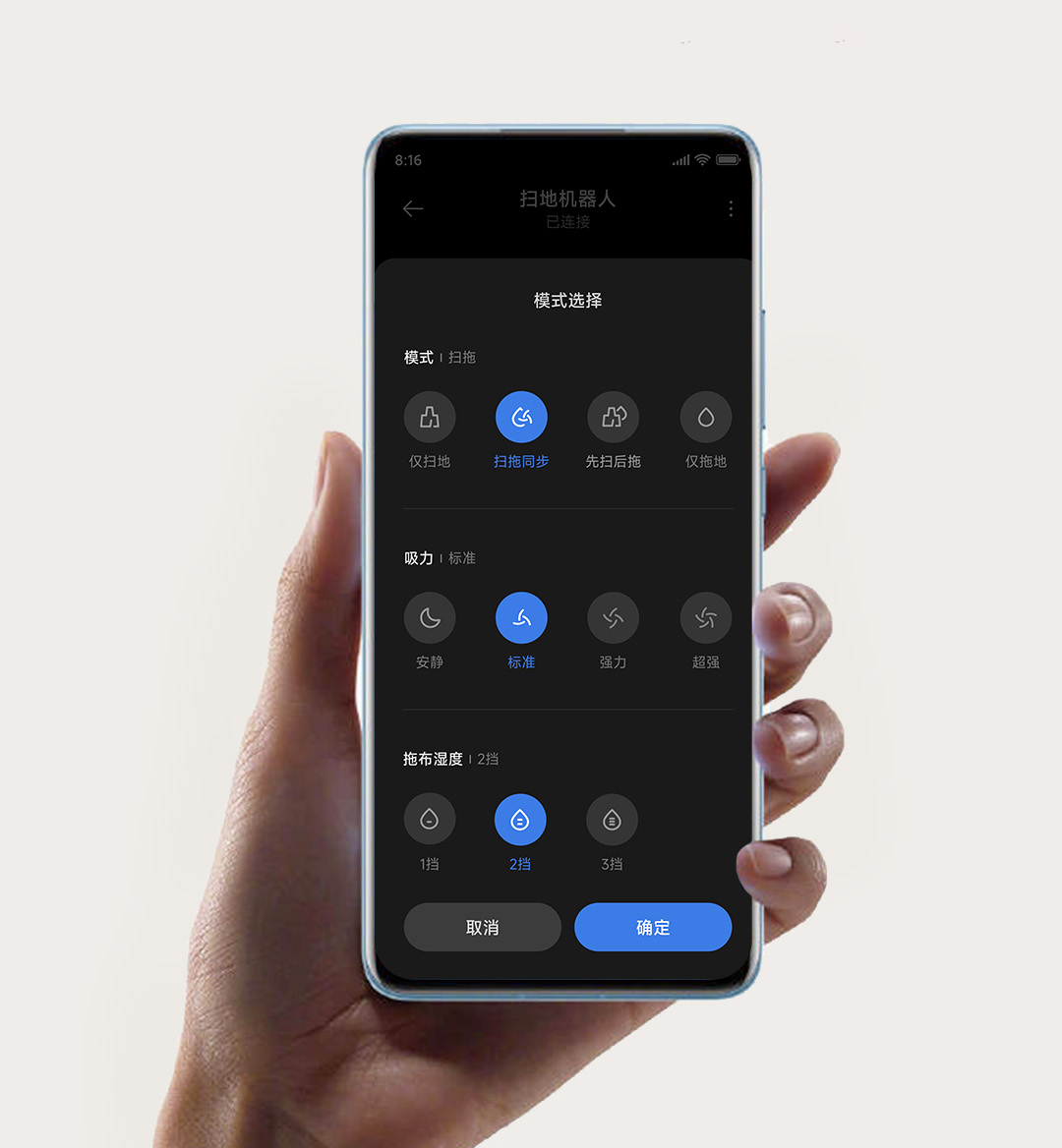 Người dùng có thể điều khiển robot qua ứng dụng Mijia, lập lịch dọn dẹp, thiết lập khu vực hạn chế hoặc điều chỉnh lực hút, giúp dễ dàng quản lý việc dọn dẹp từ xa. Bên cạnh đó, bạn cũng có thể điều khiển robot bằng giọng nói qua loa XiaoAI, thuận tiện cho cả người lớn tuổi sử dụng.