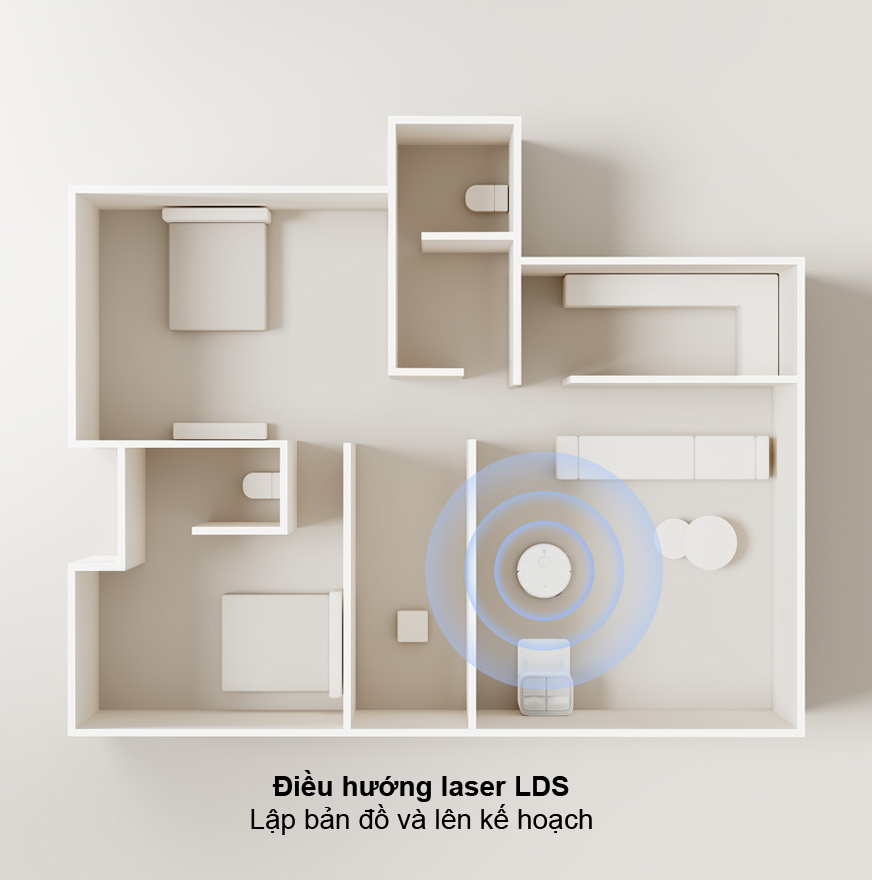Robot được trang bị hệ thống điều hướng laser LDS cải tiến, cho phép quét và lập bản đồ 360° toàn bộ ngôi nhà, giúp tối ưu tuyến đường và tiết kiệm thời gian làm sạch. Hệ thống S-Cross với cảm biến ánh sáng có góc cực rộng 110⁰, giúp robot tránh va chạm và vượt qua chướng ngại vật cao đến 20mm. Ngoài ra, cảm biến độ sâu ngăn robot rơi ở cầu thang, hoạt động an toàn và hiệu quả trong mọi không gian.
