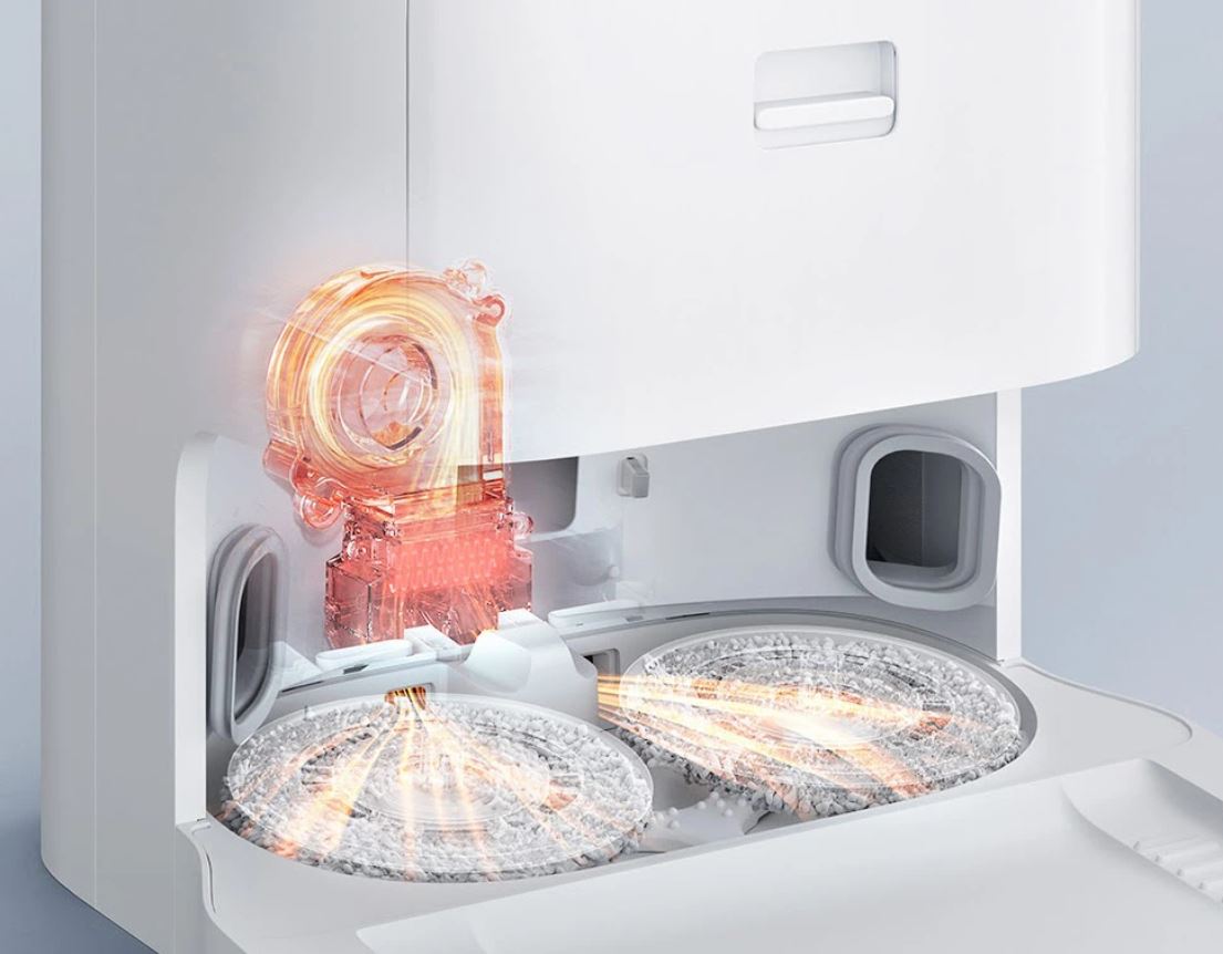 👉 Trạm xử lý toàn diện, giặt giẻ lau tự động, hút bụi tự động và sấy khô giẻ bằng không khí nóng.