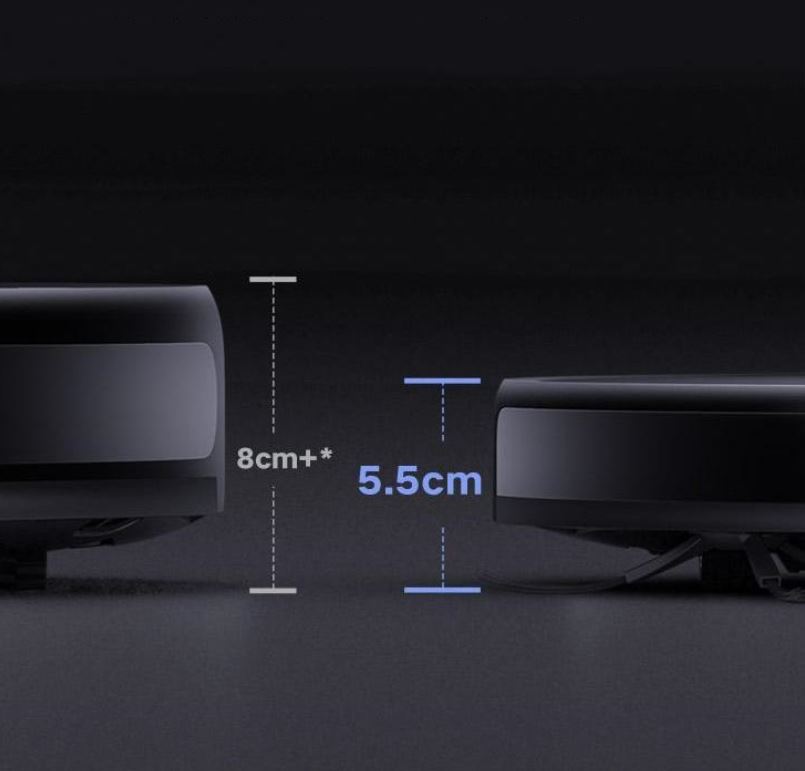 So với truyền thống Máy hút bụi, chiều cao được giảm đi 1/3. Với độ mỏng dưới 6cm Xiaomi cũng khẳng định Robot MIJIA Ultra- slim có thể đi vào gầm 80% các đồ vật nội thất trong phòng nhà bạn. Bên cạnh độ dày chỉ 5.5cm thì kích thước của Robot MIJIA Ultra-slim cũng chỉ có 32.3 x 32 mm nên nó có thể đi sâu vào tận cùng đồ đạc để lau chùi, gầm giường, gầm giường của ghế sofa trong nhà bạn.