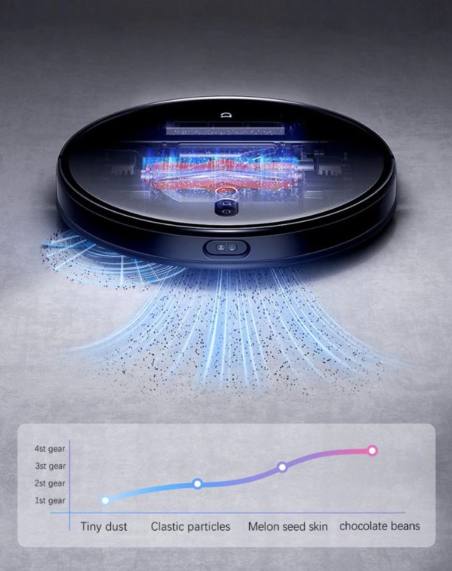 Lực hút cực lớn 2000Pa so với thiết kế siêu mỏng của mình. Với 4 mức công suất hút, người dùng có thể thoải mái lựa chọn công suất hút tùy theo mức độ sạch sẽ.