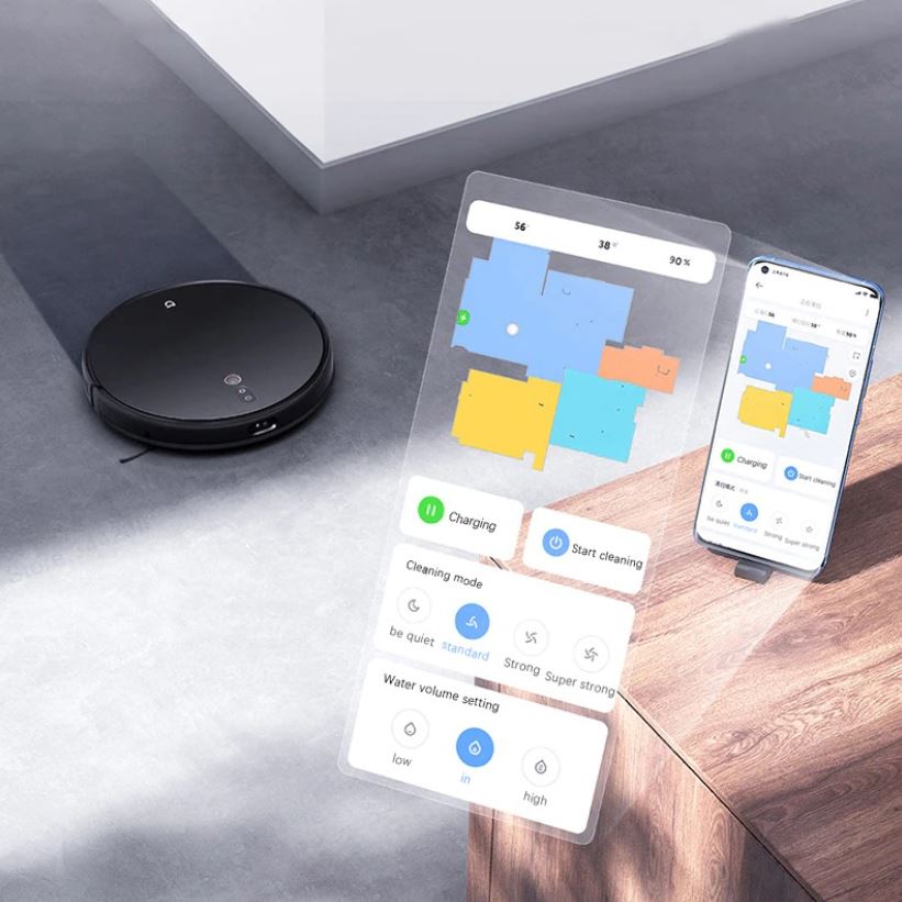 Robot hút bụi lau nhà siêu mỏng Mijia được điều khiển từ xa thông qua ứng dụng Mijia. Robot có thể tự động được bật, để lau dọn khi bạn không có ở nhà chỉ bằng một thao tác đơn giản trên điện thoại.