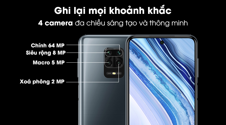 - Độ phân giải: 64MP + 8MP + 5MP + 2MP