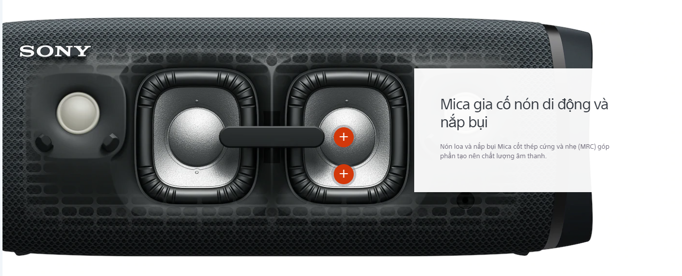 Bên cạnh đó, nón loa và nắp bụi được làm từ vật liệu cellular gia công bằng mica (MRC), cũng góp phần nâng cao chất lượng âm thanh. Hệ thống loa 2 chiều của XB43 kết hợp một loa trầm cho các tần số thấp đến trung bình với một loa tweeter chuyên dụng cho các tần số cao hơn, mang đến âm thanh rõ ràng, đặc biệt.